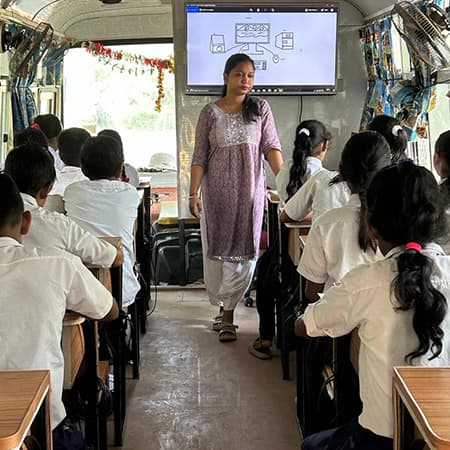 It is a step towards quality education under which LP and middle school students in Assam and North Bengal will get an opportunity to learn basic computers inside a bus equipped with computers. The course curriculum was developed by team of professors of IIT Guwahati.